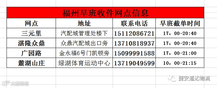 导读:尊敬的客户朋友:大家好!首先感谢大家对福州早班线路开通的支持。同时为了尽可能为供应商提供发货便利,在不影响到