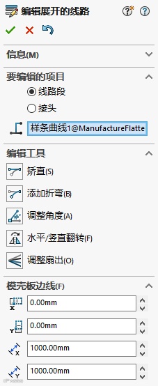 使用【编辑展开的线路】来编辑线路,使用的命令有【调整角度】【矫直】【折弯】。