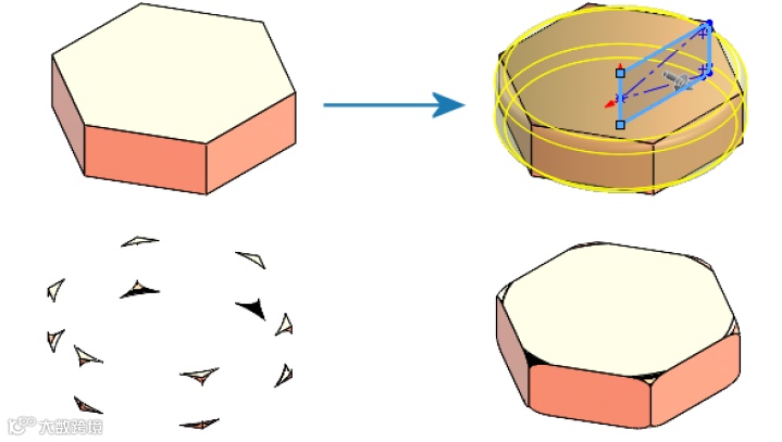 SOLIDWORKS 会生成适合模型的最小圆柱形边界框。