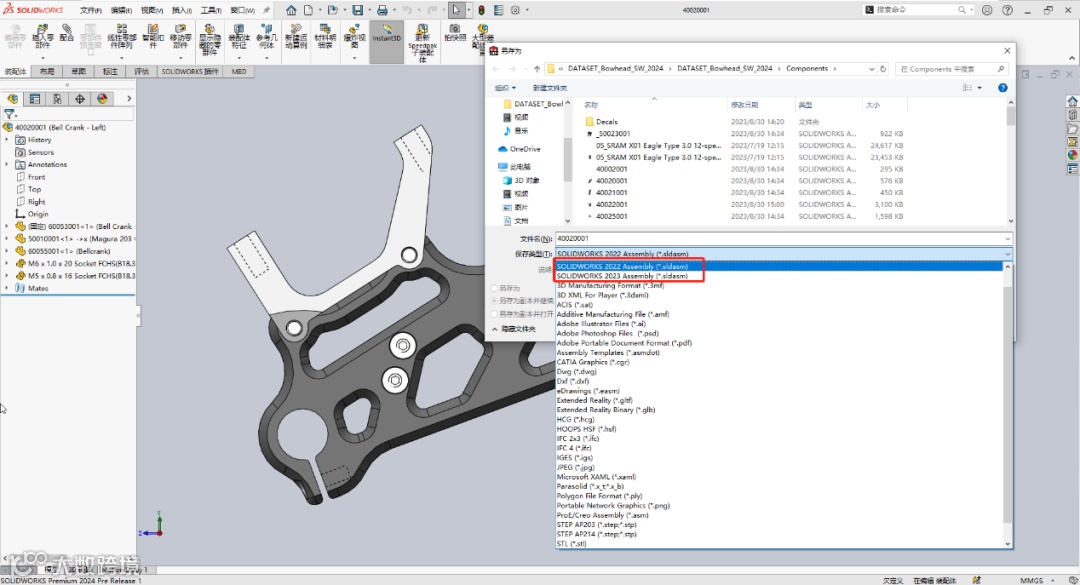 从SOLIDWORKS 2024 开始,您可以将在最新版本的SOLIDWORKS 中创建的SOLIDWORKS零件、装配体和工程图另存为SOLIDWORKS 早期版本的全功能文档。Pack and Go 也支持此功能。您可以将SOLIDWORKS 2024 文件保存为SOLIDWORKS 2023 或SOLIDWORKS 2022 版本。
