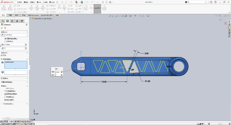 使用新的对称选项,单击一次即可创建双向线性阵列,从而保证两个方向都是对称的。相对之前定义方向二的方法,这种方法更加灵活快速。