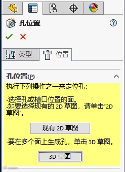 当您使用 PropertyManager 的位置选项卡时,使用异型孔向导绘制草图的功能将得到增强。