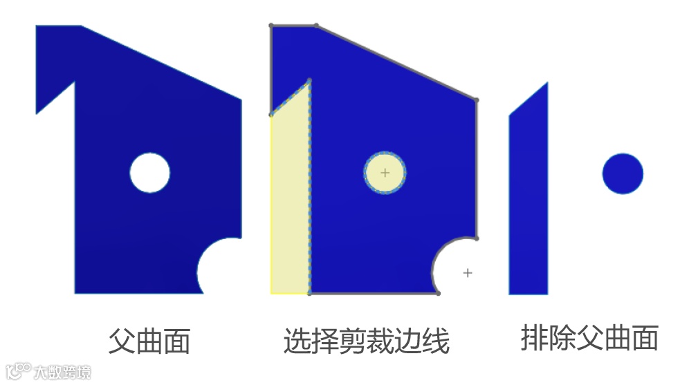您可以从曲面解除剪裁特征的结果中排除父曲面。在解除剪裁曲面PropertyManager 中的选项下,选择排除父曲面以从曲面解除剪裁特征结果中排除父曲面。