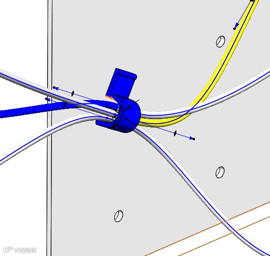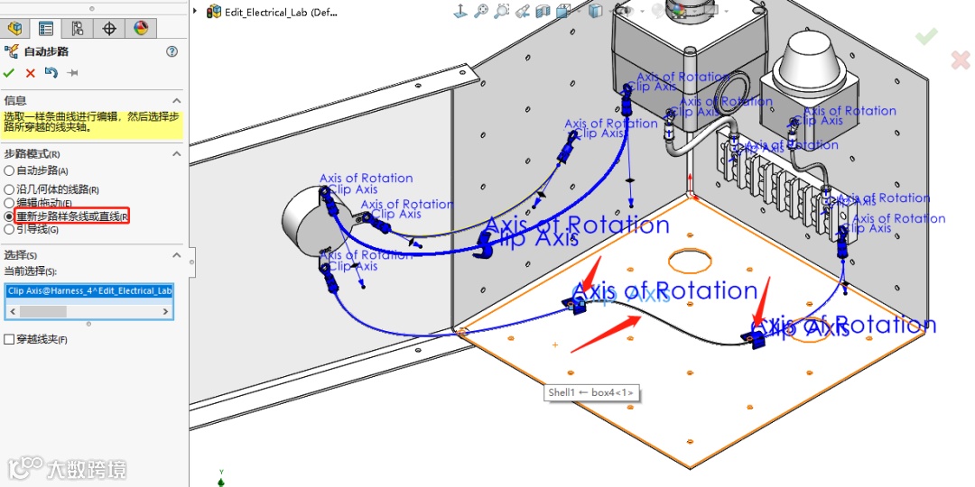 通过编辑线路添加线夹,重新步路,更改电线,如图1所示。本练习将应用以下技术 :