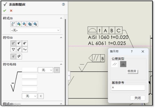 新的文档属性表面粗糙度选项,提供了符合ISO21920-1轮廓标准的表面处理符号,该标准提供了一种更新的表面粗糙度符号标注样式,并允许指定公差指示器。丰富了标准合规性和提升制造检测的沟通交流。