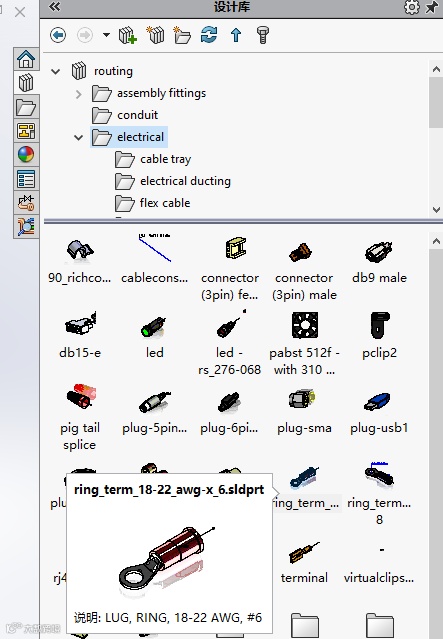 从设计库-routing-elctrical找到ring_term_18-22_awg-x_6,将它拖至图中的位置。