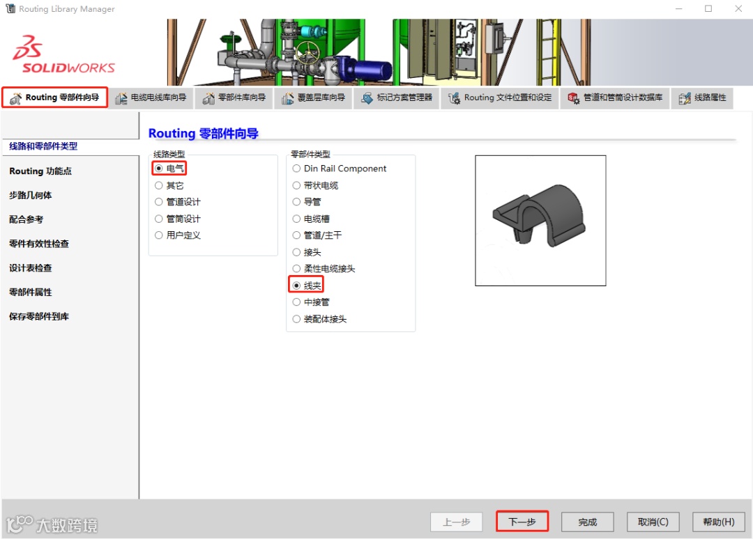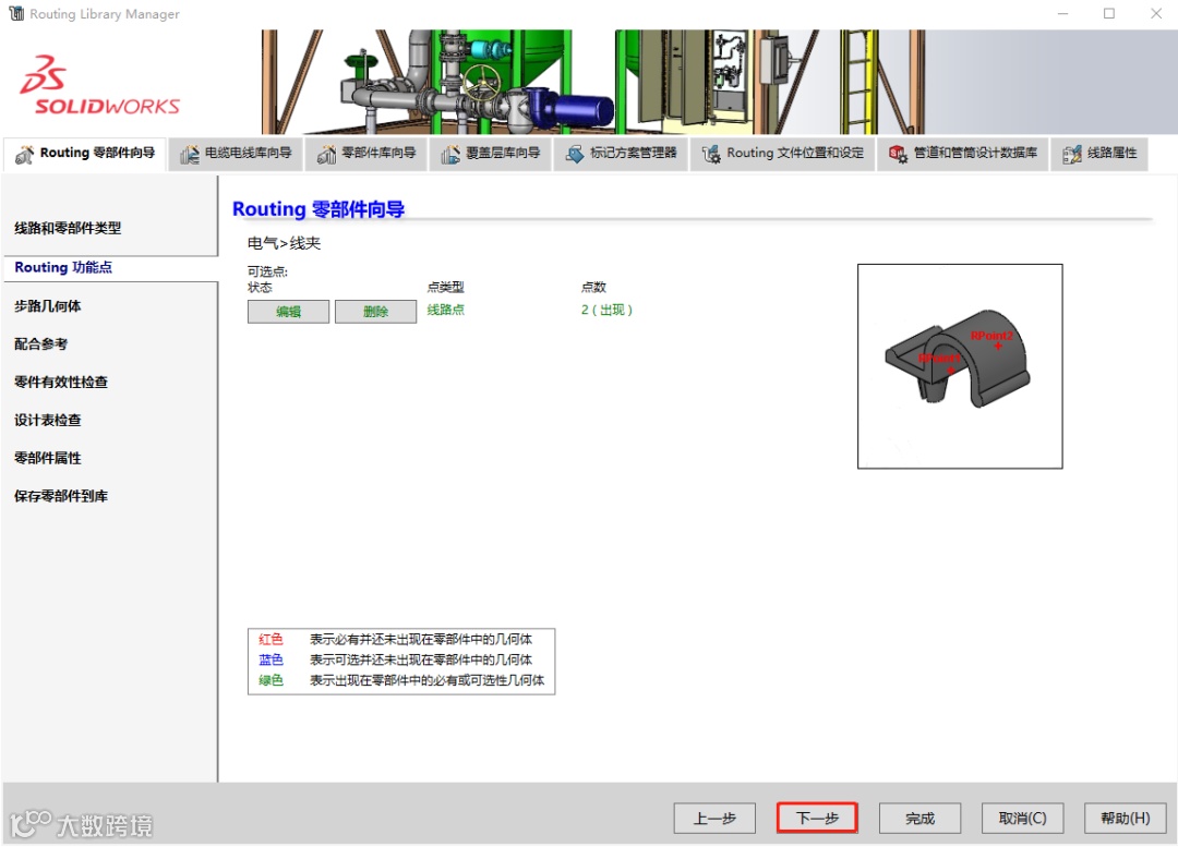 Routing库中自带的电气属性零件数量有限,各公司都要制作自己的电气零件库,可以使用【Routing零部件向导】功能创建一个线路零部件,并用它来步路,如图1所示。本练习将应用以下技术 :