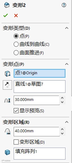 变形功能是一种强大的工具,允许用户在SOLIDWORKS中对模型进行非线性变形。通过变形功能,设计师可以在保持模型整体结构的同时,对其形状进行平滑的过渡和变化。