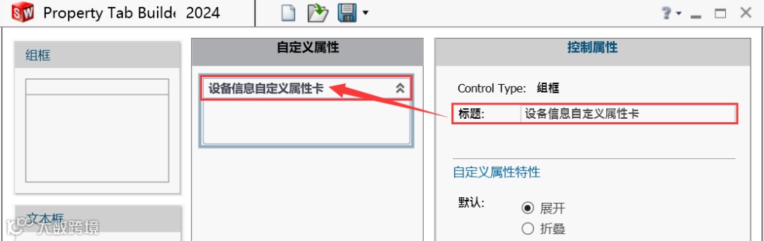 2、定义初始“组框”的标题,如“设备信息自定义属性卡”