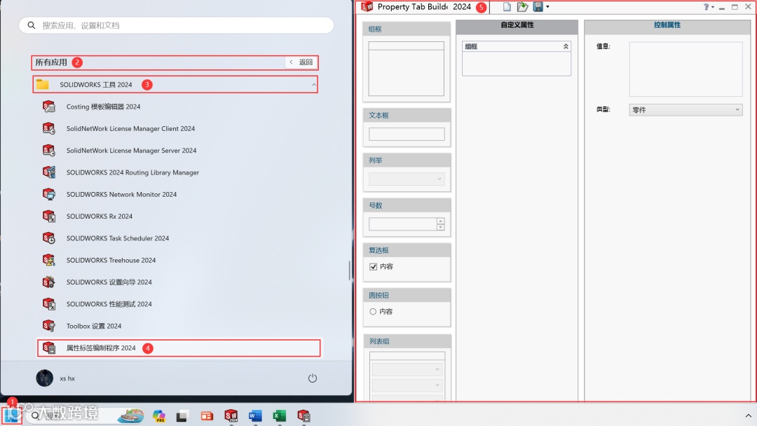 Windows开始菜单→所有应用→SOLIDWORKS工具2024→属性标签编制程序2024