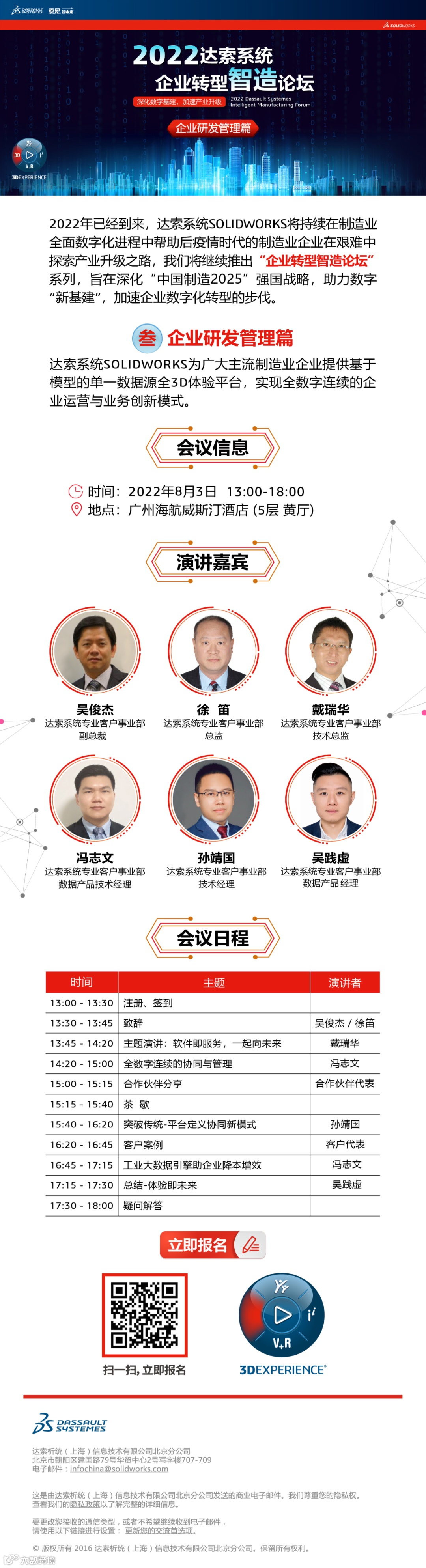 2022年已经到来,达索系统SOLIDWORKS将持续在制造业全面数字化进程中帮助后疫情时代的制造业企业在艰难中探索产业升级之路,我们将继续推出“企业转型智造论坛”系列活动,旨在深化“中国制造2025”强国战略,助力数字“新基建”,加速企业数字化转型的步伐!