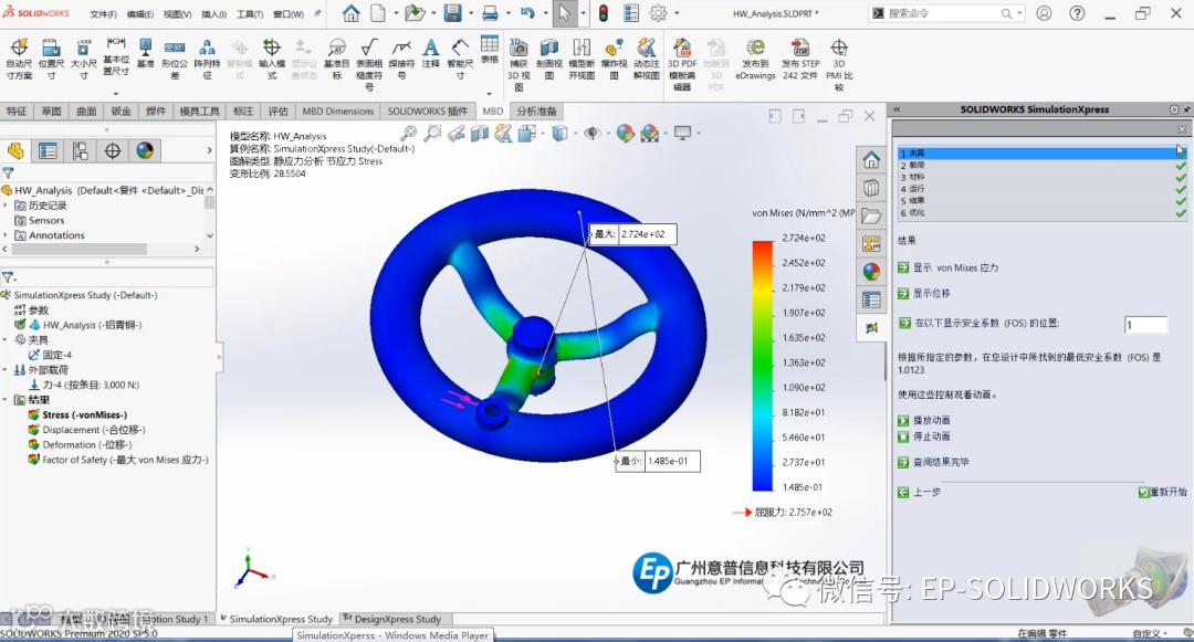 SimulationXpress 支持对单实体的分析,但它不支持装配体、多实体零件或曲面实体。接下来我们通过手轮模型案例具体讲解SimulationXpress使用。