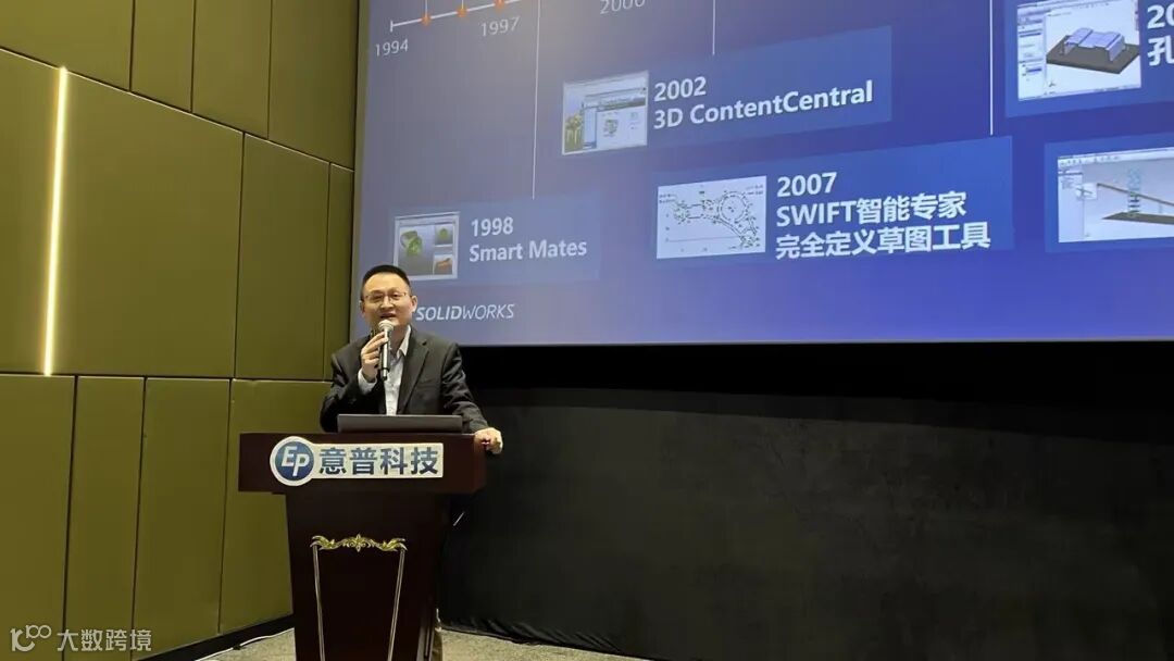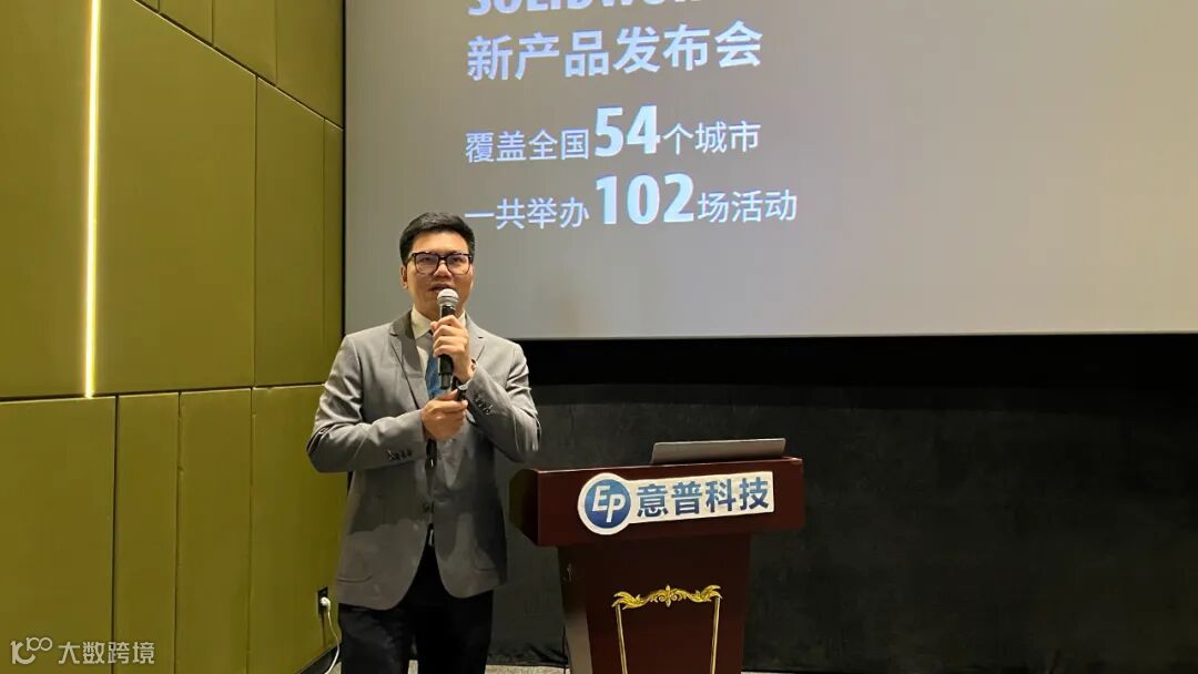 大会正式开始。首先由意普科技的总经理黄晓先生致开幕词,开场便强调今年是SOLIDWORKS发布的第30周年,并向大家介绍了意普科技的发展历程和技术实力。他期待未来能够为更多的企业提供更高效、更智能的设计和制造解决方案,助力中国制造的高质量发展。