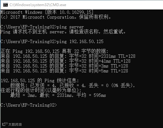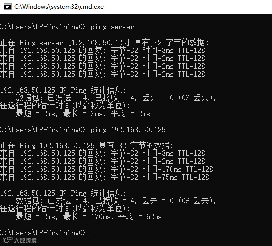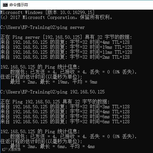 最终再次Ping服务器的名称和IP进行验证直到通畅,如图12所示