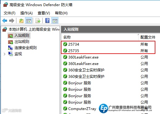 利用同样的方法创建“25735”的入站规则,如图9所示。这样就可以使SOLIDWORKS能正常获取服务器上的许可