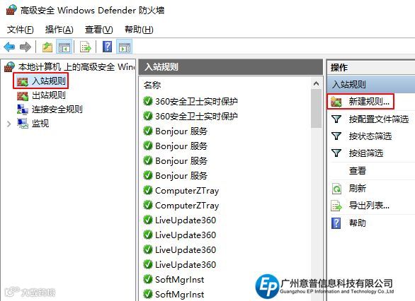 具体操作:在入站规则右边单击“新建规则”如图5所示