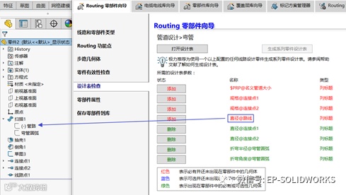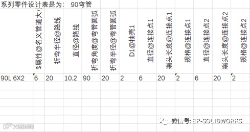 返回SOLIDWORKS软件界面,然后单击菜单栏【插入】—【表格】—【设计表】,生成一个空白设计表,分别把“管道识别符号”和“规格”三个属性添加到设计表,如图11所示。单击【下一步】