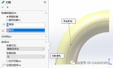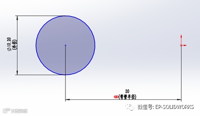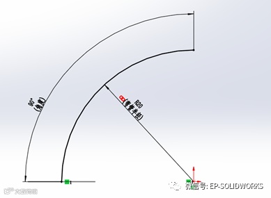 在前视基准面绘制一个扫描路径草图,半径选择“链接数值”到“弯管半径”,绘制完后退出草图。如图2所示