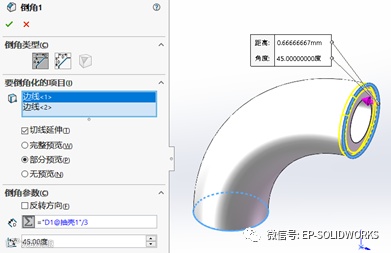 倒两个45°斜角,大小为三分之一的厚度,如图5所示