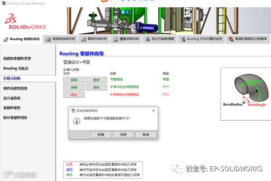 注:在这里看见的尺寸名称及后面命名的尺寸名称并非与Routing需要的名称完全一致,这里只是为了自己在后面好识别去直接改名而给的。如果你已知道弯管草图的正确名称可以直接命名正确名称