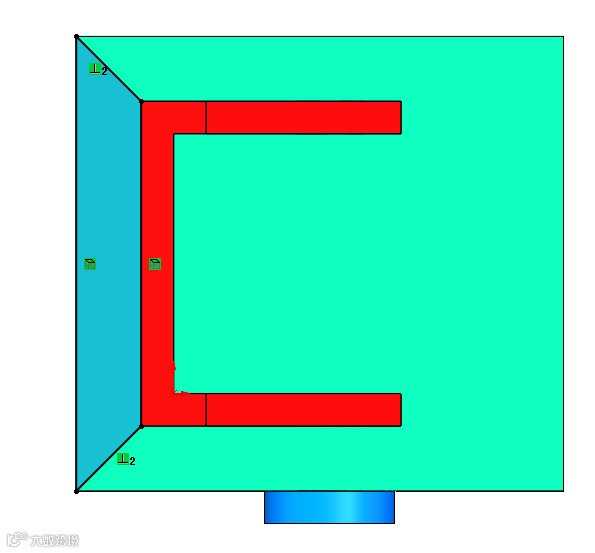 执行拉伸凸台命令,虽然此特征是实体上部导板的一部分,但此特征无法移动至文件夹上部导板,这样导致零件的层级结构比较混乱。