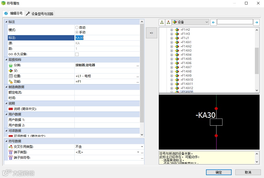2、交叉引用信息都是自动添加,有时没显示出来,可以检查【符号属性】,在符号数据栏下,交叉引用类型是否设置合理,在本例中,设置为【父表格】。如图1-3所示。