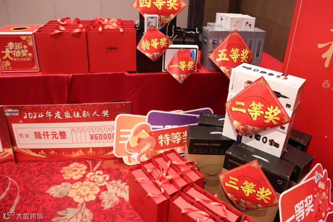 在这场盛会中,多个奖项相继颁发,以表彰在各自岗位上表现突出的员工与团队。表彰奖项包括:爱岗敬业奖、无私奉献奖、优秀管理奖、最佳新人奖、年度最佳技术创新团队奖、年度最佳项目团队奖、最佳市场开拓奖、最佳回款王者奖等一系列奖项。此外,年会还设置了抽奖环节,丰厚的奖品让大家惊喜不已。每一次抽奖,都让现场的气氛达到了高潮。