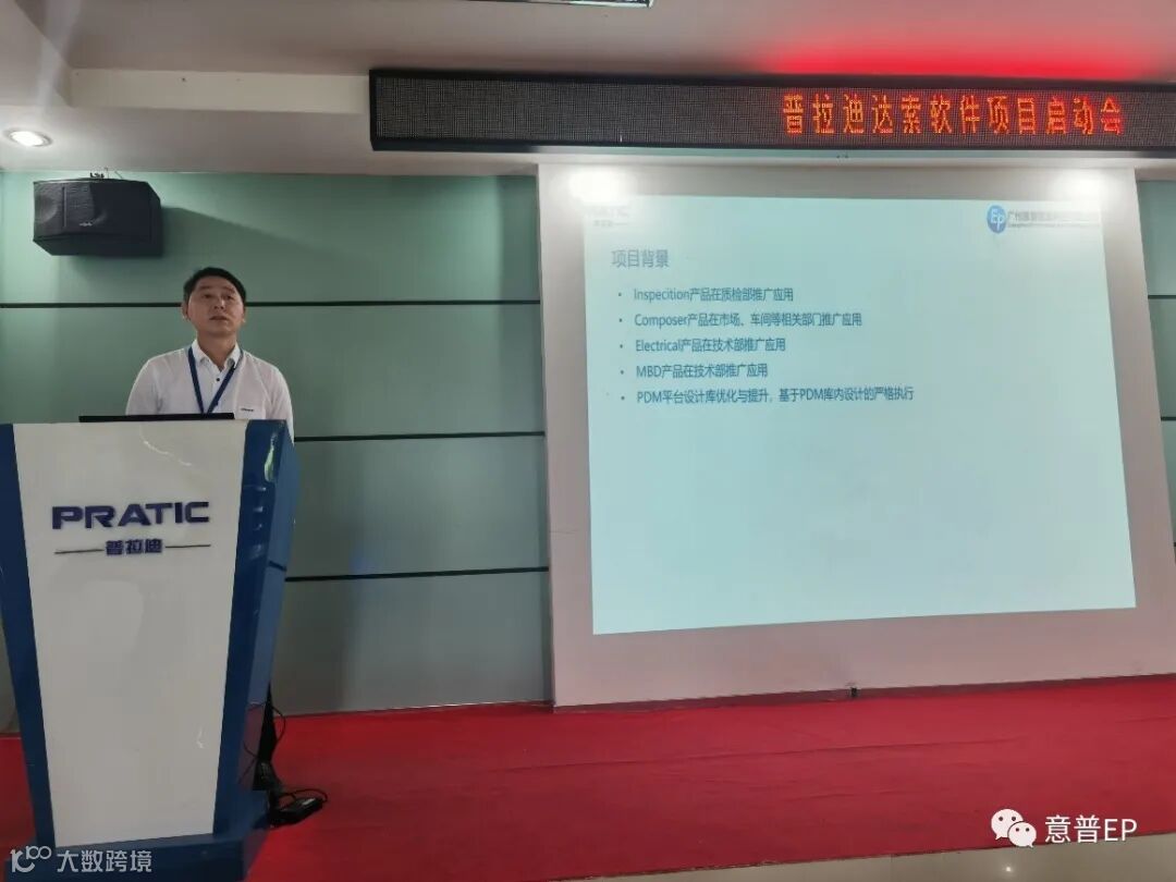 会议首先由普拉迪彭总,对本次的项目实施进行动员, 希望各相关部门人员在项目实施过程中全力配合,与意普专业顾问一起努力,搭建普拉迪三维设计研发管理平台。