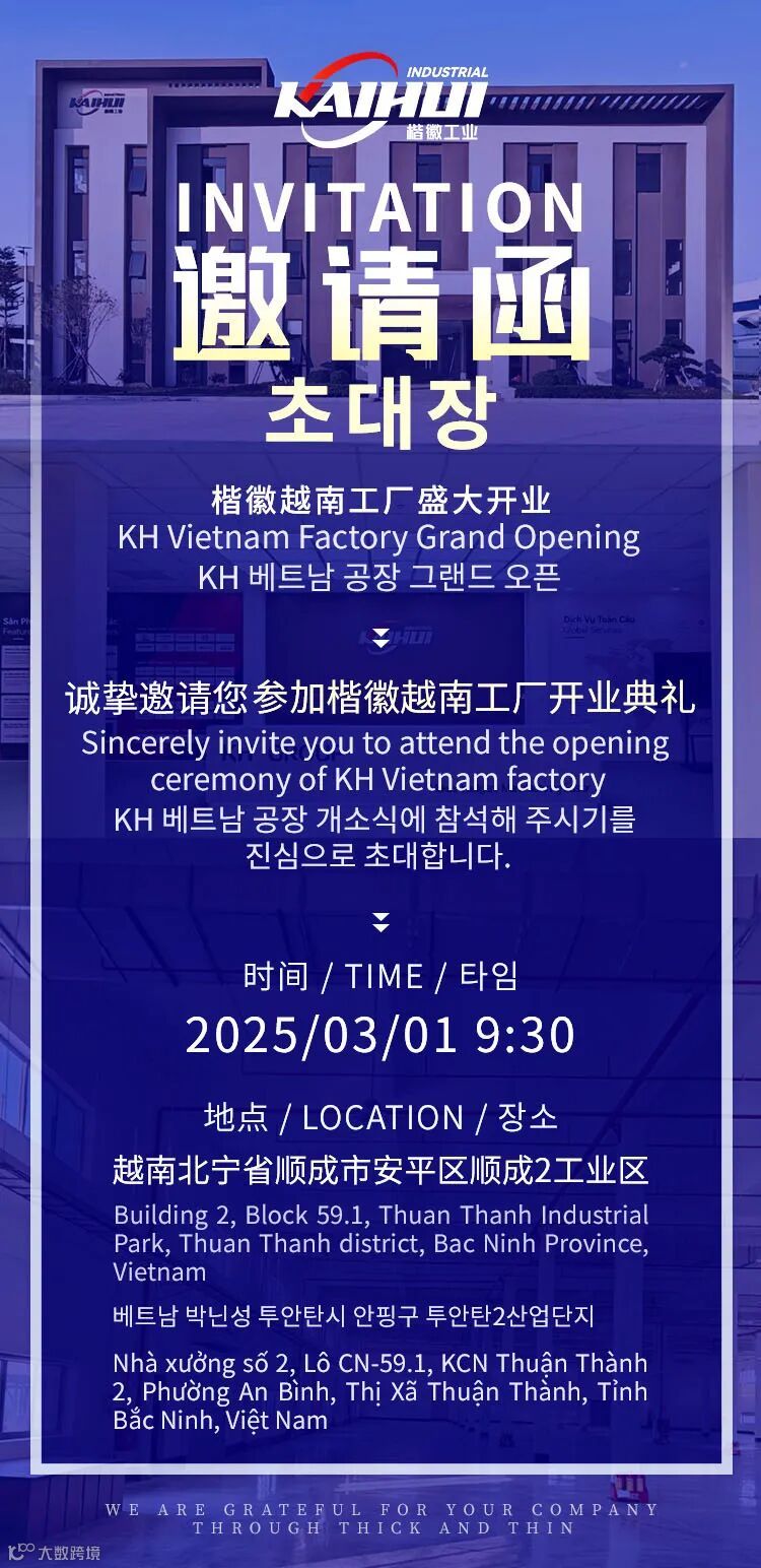 2025年3月1日,让我们共同见证楷徽集团越南新工厂的盛大开业!期待楷徽在全球化征程中再创辉煌!