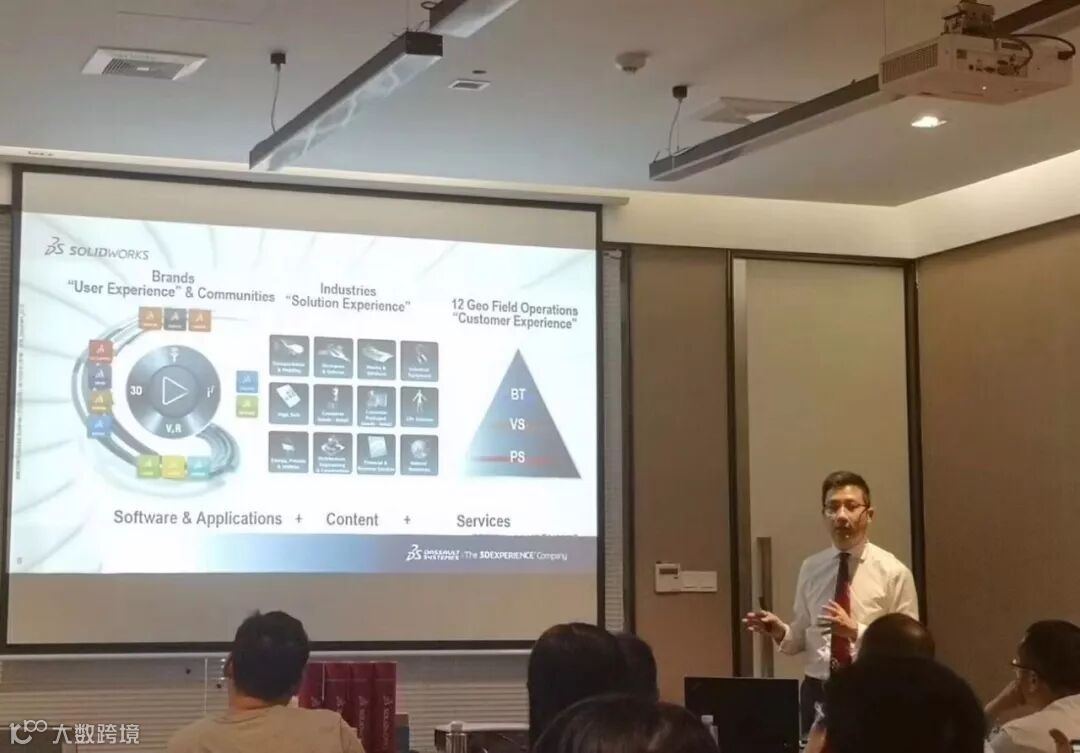 会议开始,由我们达索系统SOLIDWORKS华南区渠道经理赵子毅先生以“DS与SOLIDWORKS--昨天,今天,明天”为主题,率先发表演讲。赵经理首先向大家介绍了达索系统的发展历程;然后提出我们现在正处于工业复兴时代,需要依靠强大的数字化体验平台,数字化体验平台用智能化虚拟环境提供人类的一切知识与专业技术,支持人们自由畅想、预见和创造可持续的未来。