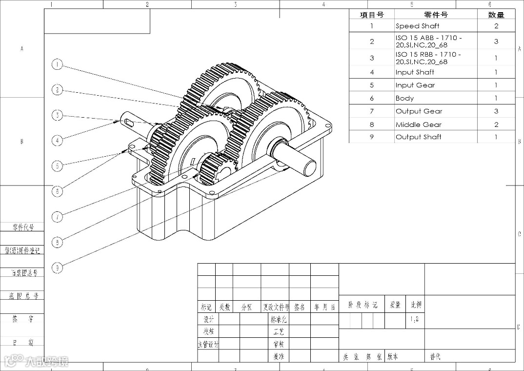 BOM表对大家来说再熟悉不过了。SOLIDWORKS工程图的BOM表功能就十分强大,就像下面这个减速器的图纸,非常的简洁、美观,零件序号标注非常的清楚,赏心悦目!