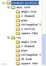 1、首先需要确认SOLIDWORKS自己附带的焊件库的位置和格式,文件格式构成,我们可以在安装目录下查找Program FilesSolidWorks Corp SolidWorks langchinese-simplifiedweldment profiles里面,有两个文件夹,最外面的是标准(如ISO、ANSI),当然我们可以制定自己企业的库,命名为“XXX企业焊件库”;内部的就是分类了,我们也可以自由制定命名为“角钢”、“矩形钢”、“槽钢”、“管道”等,文件的格式必须这样构架,否则就会出现错误哦;