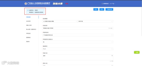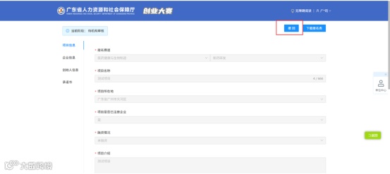 若报名信息被退回,登录后左上角会写明回退原因,如图,请参赛者查看退回原因并按回退意见修改完善后,再次提交。