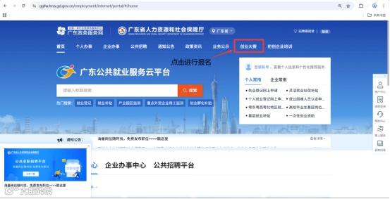 https://ggfw.hrss.gd.gov.cn/employment/internet/portal/#/home