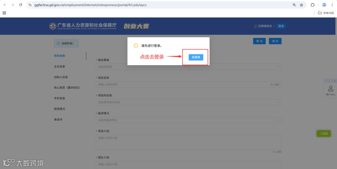 进入报名界面,点击【去登录】按钮,在用户登录界面进行注册或登录,如图所示: