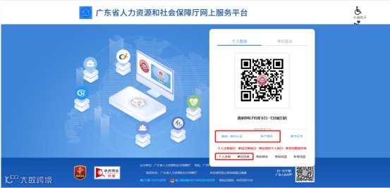 已经注册个人账号或单位账号的,可直接输入用户名以及密码,或使用电子社保卡(小程序/app)扫码登录,亦可使用省统一身份认证,微信扫描粤省事二维码认证登录。