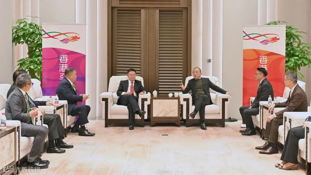 ▲曾国卫(右三)与广州市委常委、南沙区委书记刘炜(左四)会面交流。驻粤办主任李炳威(右一)及工总主席林世豪(左三)陪同。