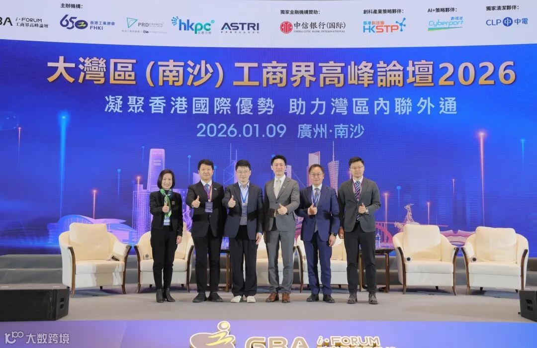 1月9日,每年一度的工商界盛事——“大湾区(南沙)工商界高峰论坛及交流会2026”在广州南沙举行。活动由香港工业总会(工总)、工总辖下珠三角工业协会(珠三角工业协会)、香港生产力促进局(生产力局)及香港应用科技研究院(应科院)联合主办,并获香港特区政府驻粤经济贸易办事处(驻粤办)作为论坛策略合作机构支持。