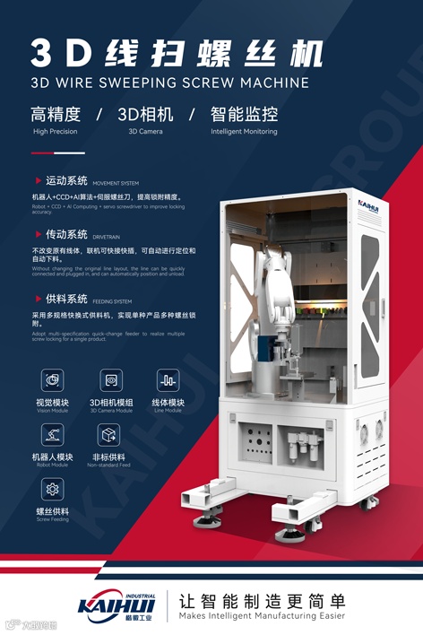 2006年,楷徽工业全面进入高端智能装备行业,公司集研发、生产、销售、服务为一体,拥有自主的电气和软件的开发能力,以及市场主流品牌机器人的整合能力,形成了几十项技术专利及认证,产品广泛应用于电脑电子、家电、汽车、新能源等行业。