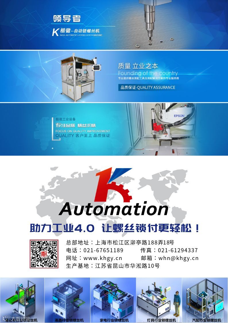 此次展会上海楷徽工业将在5号馆A区06号展位展出六轴多枪、三轴多枪、嵌入式、斜面式、机器人手臂型等数台行业领先智能锁螺丝机,届时欢迎各位莅临指导!