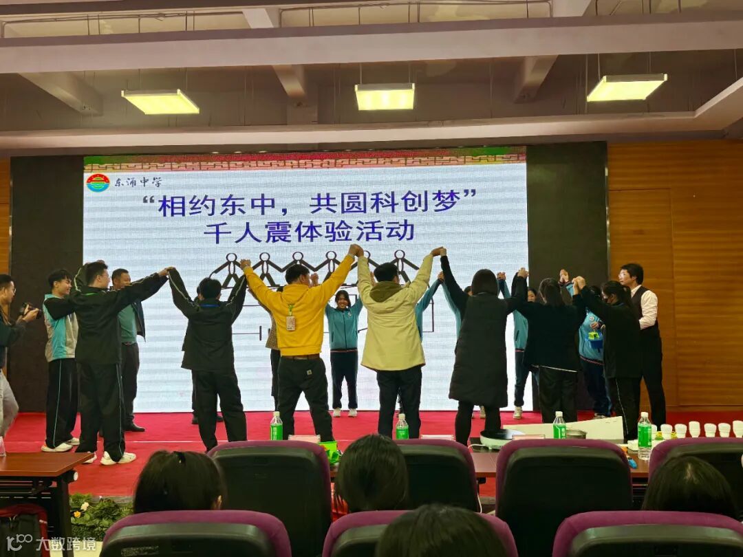 研学活动的重点之一是前往姊妹学校广州市东涌中学开展教育教学交流活动。在静电实验、隔空点灯和千人震项目体验环节,学生们积极上台参与互动,亲身感受物理的奇妙与魅力。精心安排的团建游戏互动,更进一步增进了两地师生之间的友谊与交流。