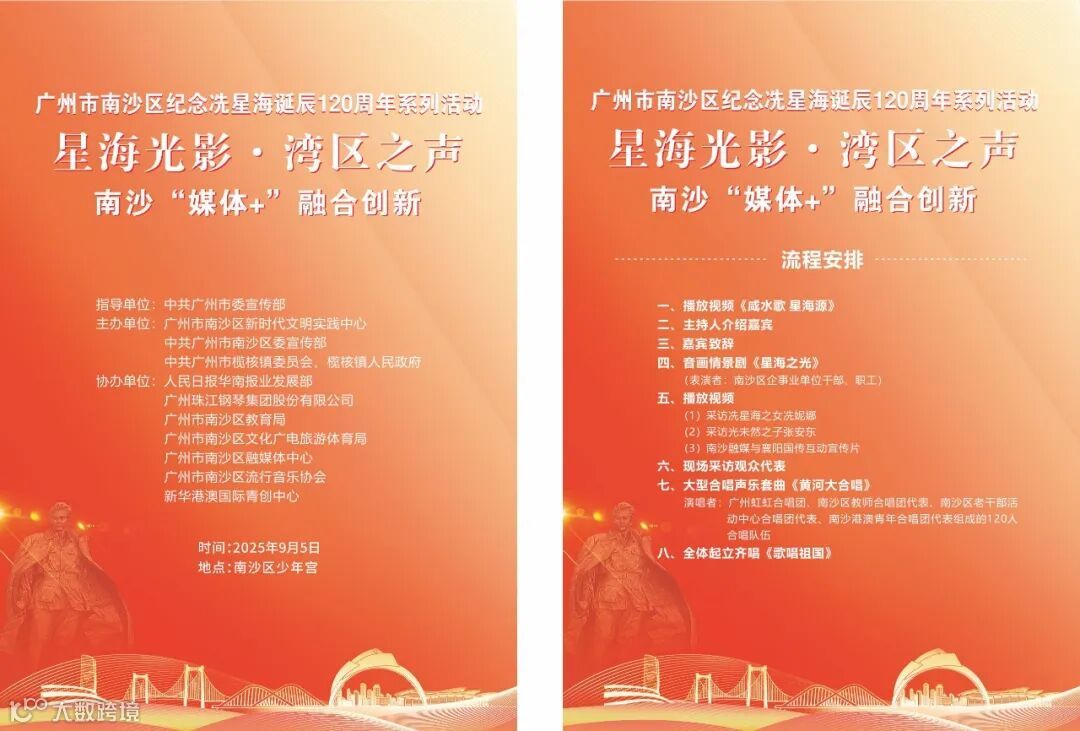 本次活动由中共广州市委宣传部指导,南沙区新时代文明实践中心、中共广州市南沙区委宣传部、中共广州市榄核镇委员会、榄核镇人民政府主办,人民日报华南报业发展部、南沙区融媒体中心及新华港澳国际青创中心联合呈现,以“赓续红色血脉,弘扬星海精神”为主线,通过艺术展演、文化交流与媒体传播的深度融合,为湾区观众带来一场震撼心灵的文化盛宴。