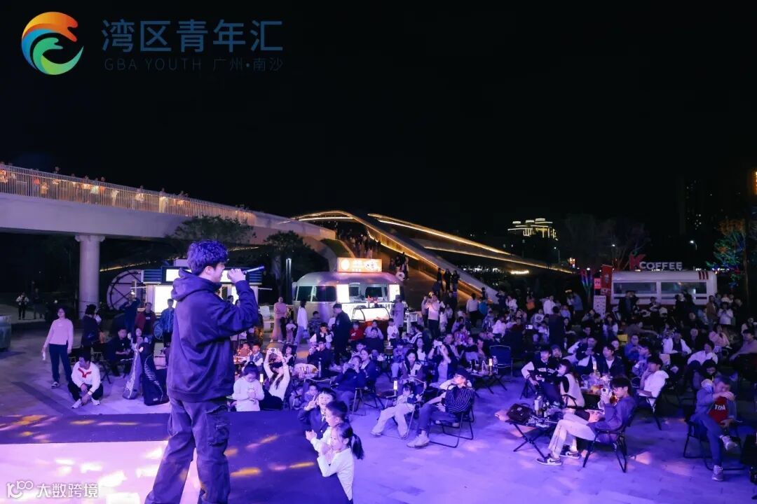 近百名来自不同行业和领域的粤港澳青年相聚在创享湾聚星桥下广场(歪马舞台),用歌声唱响属于湾区青年的青春旋律,用音乐抒发湾区青年对祖国的热爱。