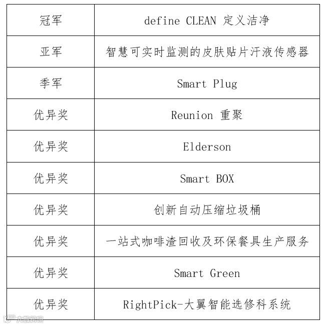 本次大赛旨在鼓励和支持有远见和勇气的创业者,为社会问题提供创新的解决方案,为社会出谋献策。为支持优秀初创项目持续发展,本次大赛设有多个奖项,进入决赛十强的队伍均会获得奖项及奖金。经过激烈角逐,最终define CLEAN团队摘得桂冠,智慧可实时监测的皮肤贴片汗液传感器团队荣获亚军,Smart Plug收获季军。