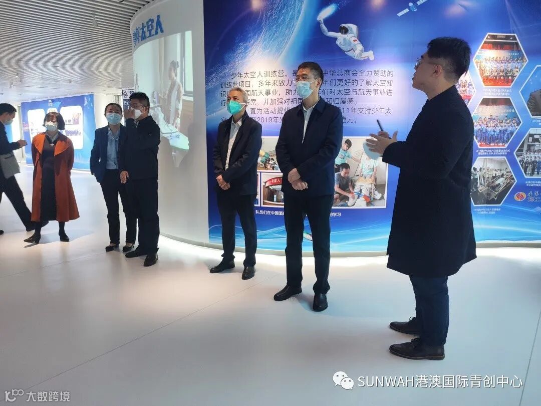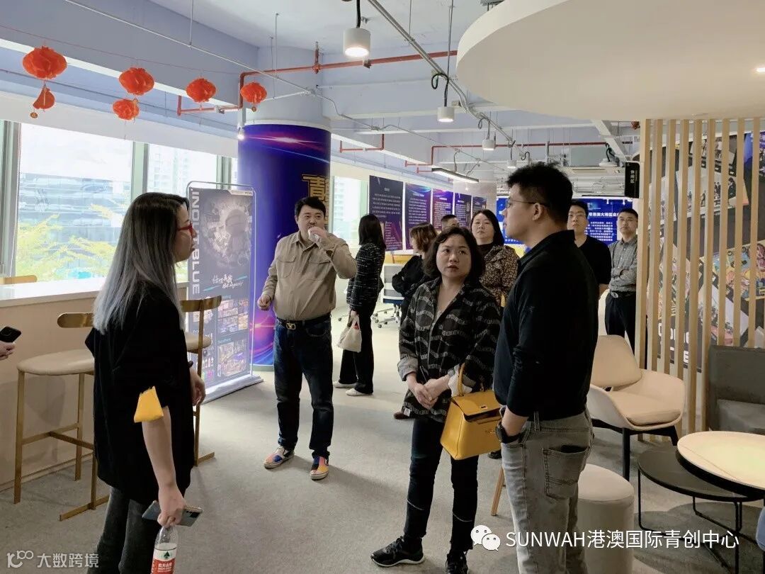 团区委与澳门教育暨经济文化协会一行40人莅临中心参与粤港澳台侨青年交流活动,在中心负责人蔡总的陪同下到展厅进行参观并与入驻团队进行交流,蔡总表示希望中心利用好集团丰厚的优质资源把港澳台侨国际青年“引到南沙来”,再通过政府各式优惠政策引导及中心专业创新创业服务,成功帮助他们“走向世界去”。
