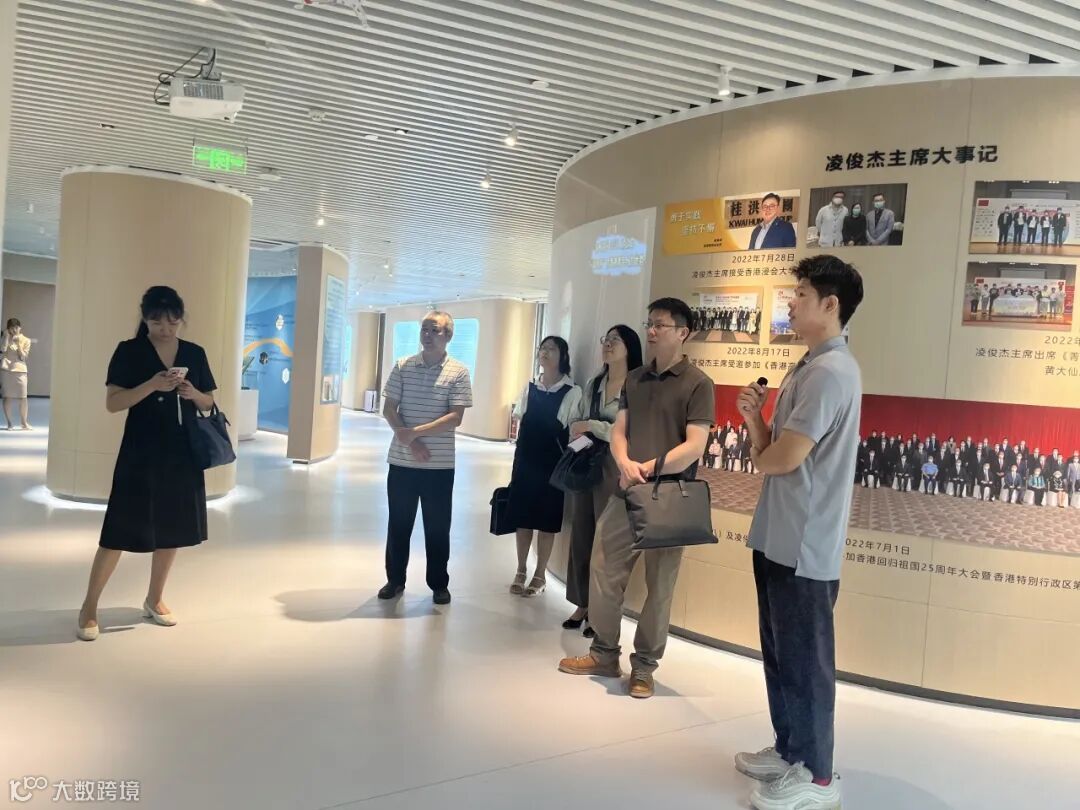 2023年9月22日,天河区委党校课题组一行莅临中心参与粤港澳台侨青年交流活动,中心工作人员陪同众人参观展厅,介绍了中心发展历程,资质荣誉等基本情况,对平台资源优势、运营优势等进行了详细说明。
