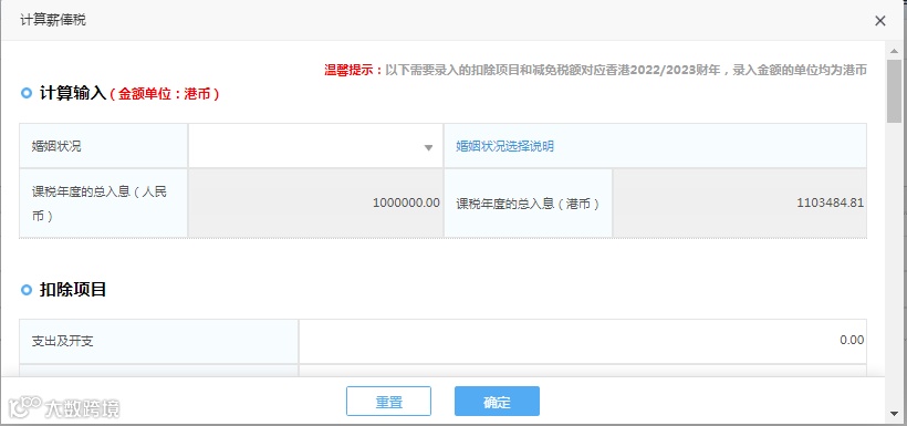 为方便您测算超过香港(澳门)税负部分的减免税额,您可以使用税务机关提供的测算工具,测算结果仅供参考。