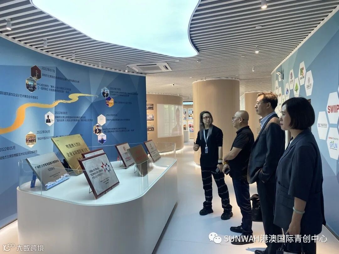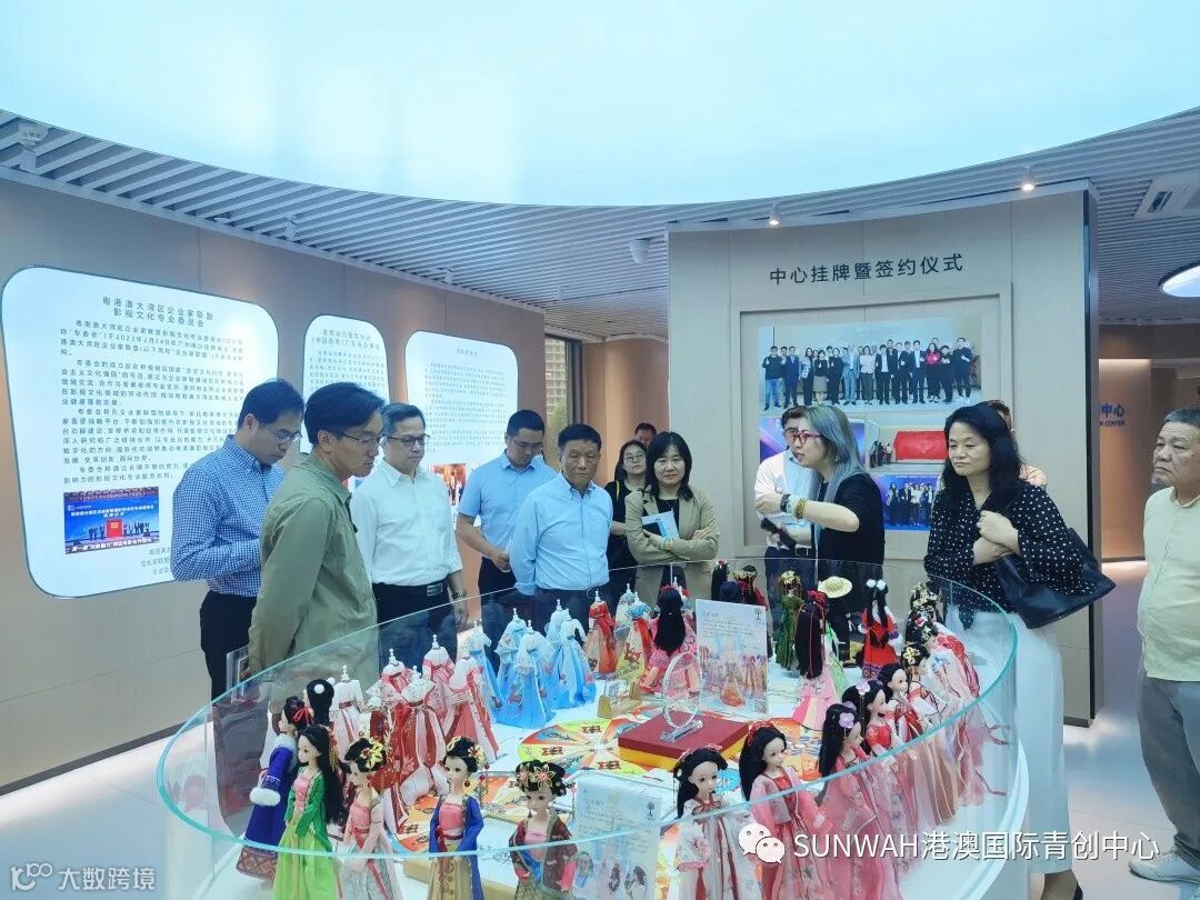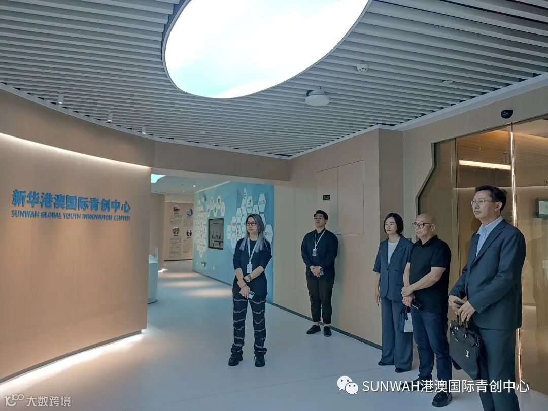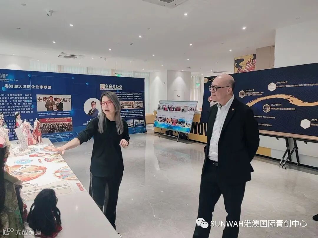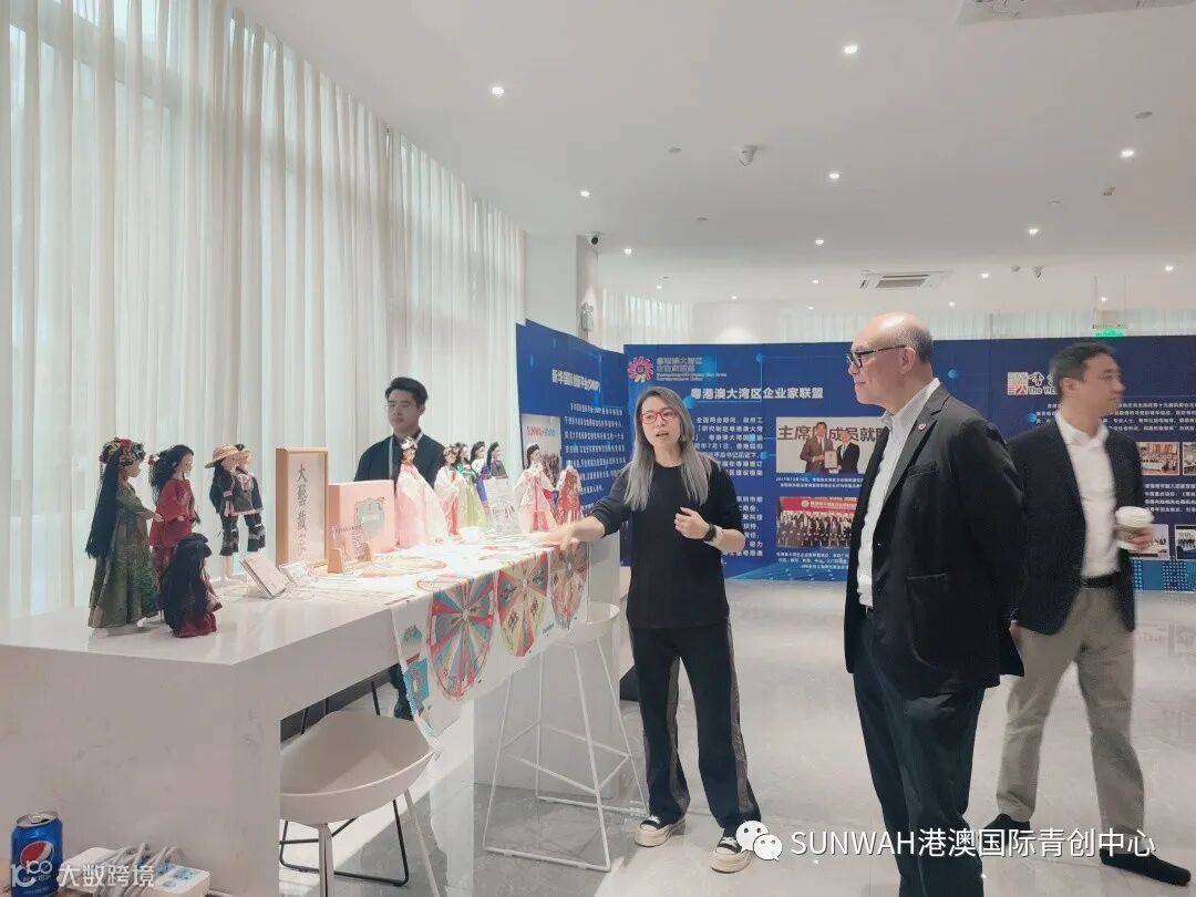 粤港澳大湾区企业家联盟影视文化专业委员会副主任一行莅临中心参观交流,在中心负责人蔡总陪同下参观二楼展厅,了解中心运营情况与入驻青创团队发展情况,随后探讨双方合作的机会,助力港澳青年积极融入国家发展大局。