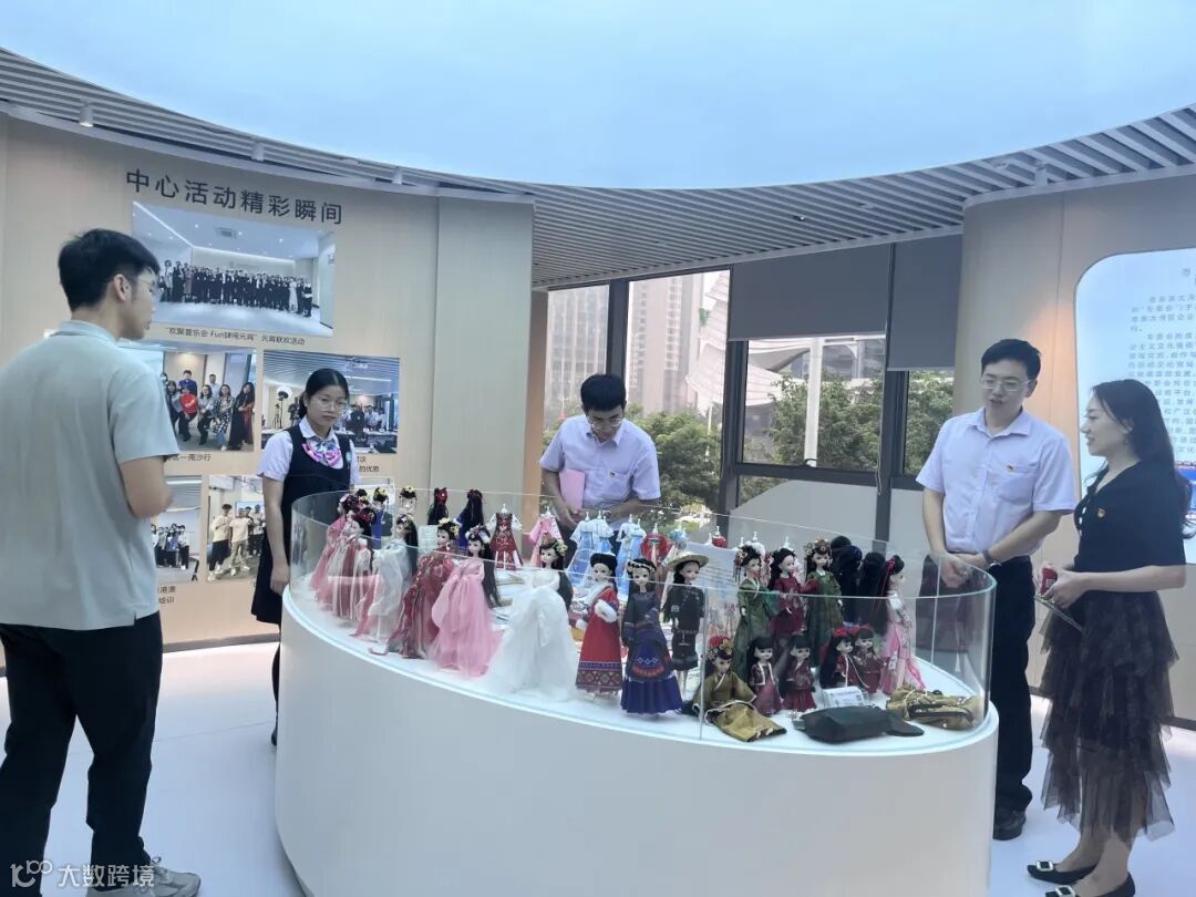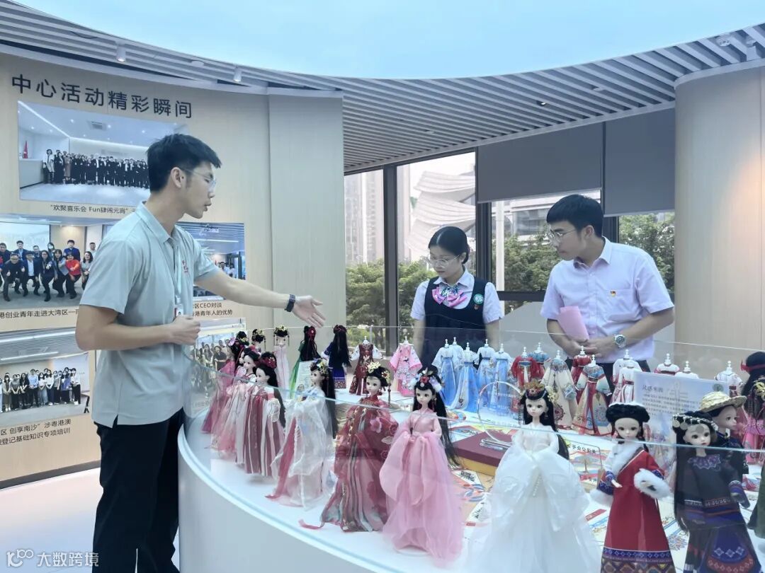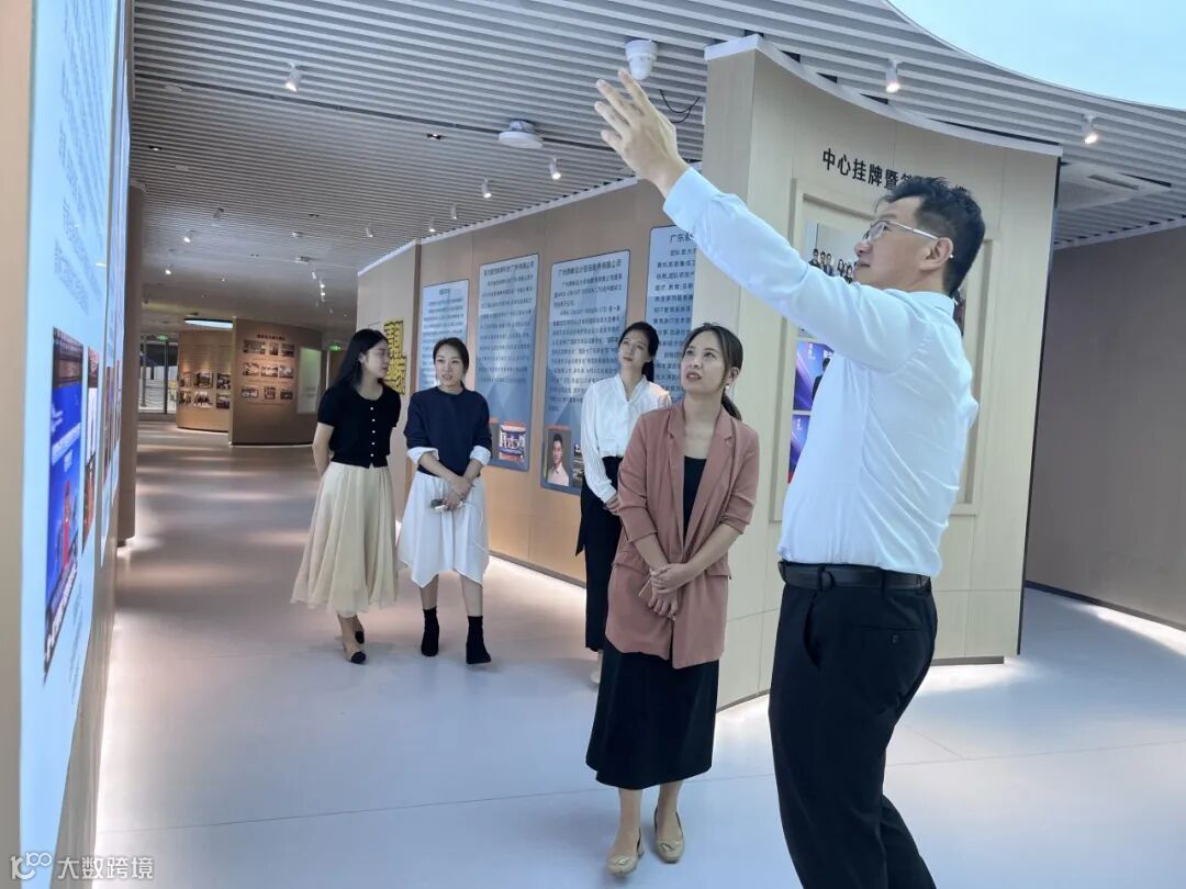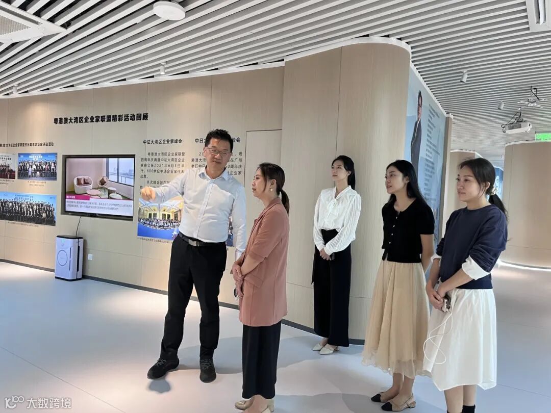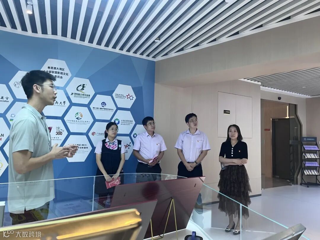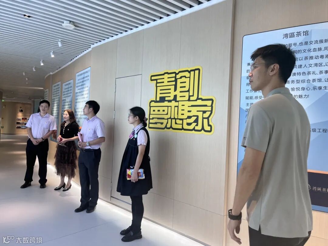 2023年10月19日,湾区中国“走出去”综合服务基地一行莅临中心参与粤港澳台侨青年交流活动,在中心管理层的陪同下参观展厅,了解中心资源导入、运营规划及能为入驻团队提供资源对接、项目合作等多种创新创业服务。