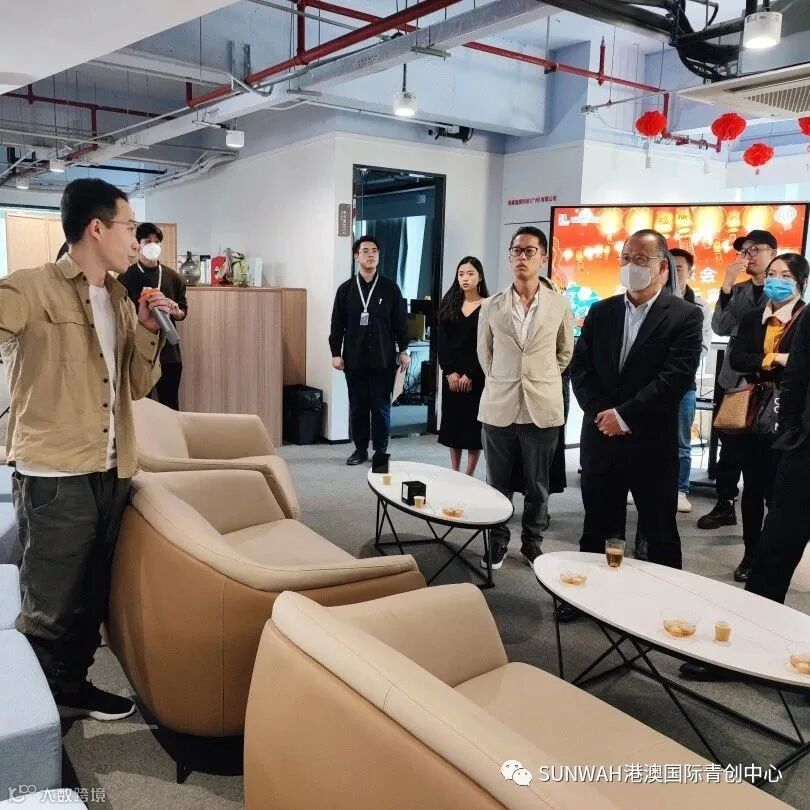 2月5日,元宵佳节当天下午,香港新华集团主席蔡冠深博士,连同新华港澳国际青创中心联席主席蔡展思先生等一行集团主管莅临本中心进行参观指导,先后参观园区各青创基地。行程来到最后一站,在中心首席运营官蔡纯真女士的陪同下,前往本中心二楼展厅与中心入驻团队的创始人进行深入交流。